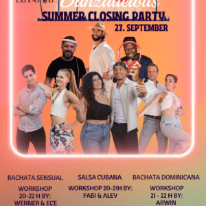 La Danza lädt wieder zur Danzalicious ein! Datum: 27. September 2025 3 FLOORS Salsa Cubana Bachata Sensual Bachata Dominicana 3 WORKSHOPS Salsa Cubana: ➠20h – 21h Fabi & Alev – Soft Leading and Following (Improver) Bachata Sensual: ➠20 – 22h Werner & Ece – Fernando & Julia – „Ladies & Gentleman Bachata Choreo Project“ –...