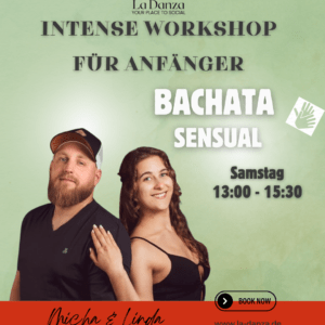 Der beliebte Wochenend-Workshop beinhaltet Spaß und intensives Erlernen der Grundzüge des Tanzes Bachata Sensual. Du lernst die Grundschritte und das Führen und Folgen sowie schöne Kombinationen. Ermässigung für Studenten und Abonnenten von La Danza. Der Saal ist klimatisiert! Zeit: 13:30 bis 15:30 Uhr Teilnahme nur nach Anmeldung. Bitte hier buchen